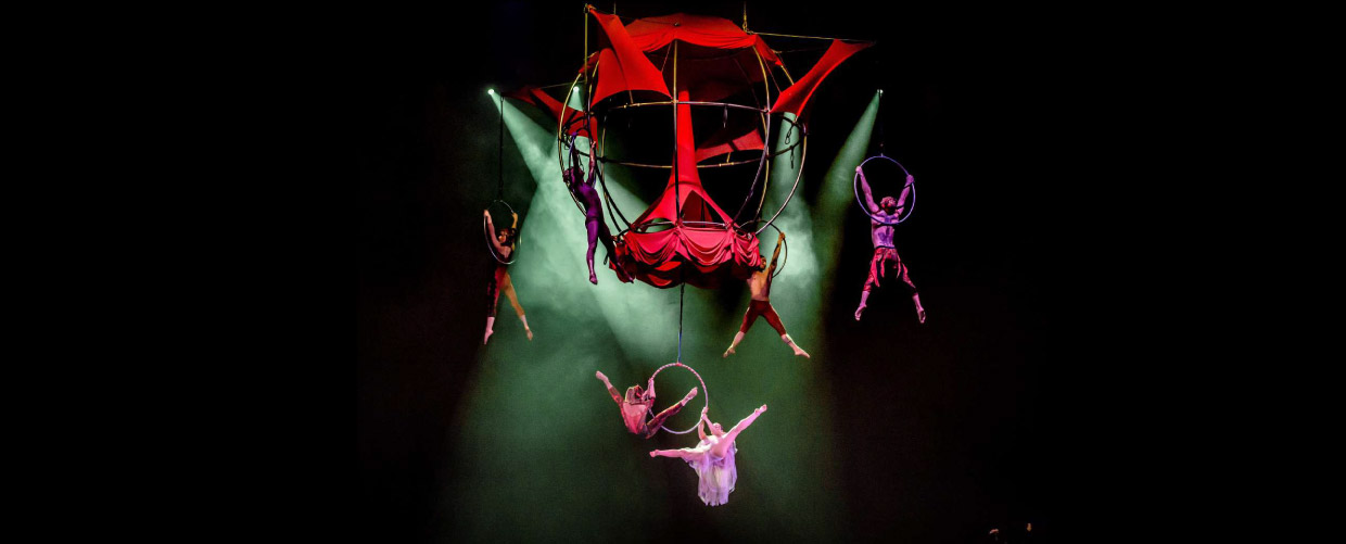 Based on acrobatic performances, with ambiance and settings inspired by the “nouveau cirque”, Meraviglia offers an extraordinary view on fantastic places and creatures hanging from the sky.