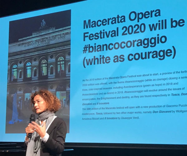 È stata Barbara Minghetti, direttrice artistica del Macerata Opera Festival, a raccontare la prossima edizione della manifestazione maceratese che si svolgerà dal 17 luglio al 9 agosto 2020 nel segno del #biancocoraggio: in scena si alterneranno le opere Tosca, Don Giovanni e Il trovatore, tre titoli pensati per evocare e approfondire i temi dell’emancipazione, dell’illuminismo e del destino.
