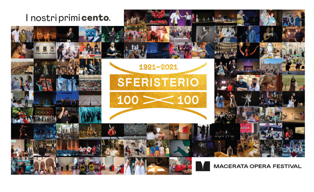 Un’edizione speciale del Macerata Opera Festival, pensata dal sovrintendente Luciano Messi, dalla direttrice artistica Barbara Minghetti e dal direttore musicale Francesco Lanzillotta, per celebrare il centenario dalla prima rappresentazione operistica nel 1921, attorno al quale è stato costruito un programma speciale che, accanto ai due titoli operistici verdiani più iconici della storia dello Sferisterio (Aida e La traviata), ha visto star della danza (da Svetlana Zakharova a Martina Arduino), del teatro, del pop e del jazz (da Bollani a Brachetti e Marcorè), a spettacoli nati per quest’anno celebrativo come Black Aida o i tre Palco Reverse (con la prima esecuzione di una composizione di Silvia Colasanti o il concerto “Al chiaro di luna” di Francesco Libetta e Riccardo Massi), laboratori e percorsi accessibili ai non udenti e non vedenti di InclusivOpera, ma anche mostre e incontri come quello sulle foto dell’Archivio Balelli per rivivere la mitica produzione del 1921, Manifestival nel corridoio innocenziano per ripercorrere la storia dell’opera allo Sferisterio tramite i manifesti delle varie edizioni, The Flying Dutchman di Fabrizio Cotognini a Palazzo Buonaccorsi o ancora la retrospettiva dedicata a Dante Ferretti a Palazzo Ricci. Inoltre, in occasione del centenario dalla nascita, il foyer dello Sferisterio è stato dedicato a Carlo Perucci.
