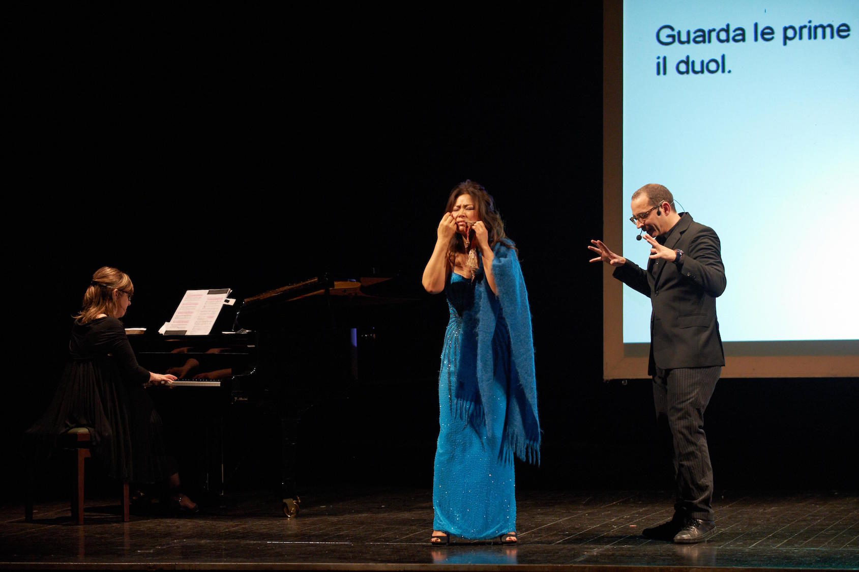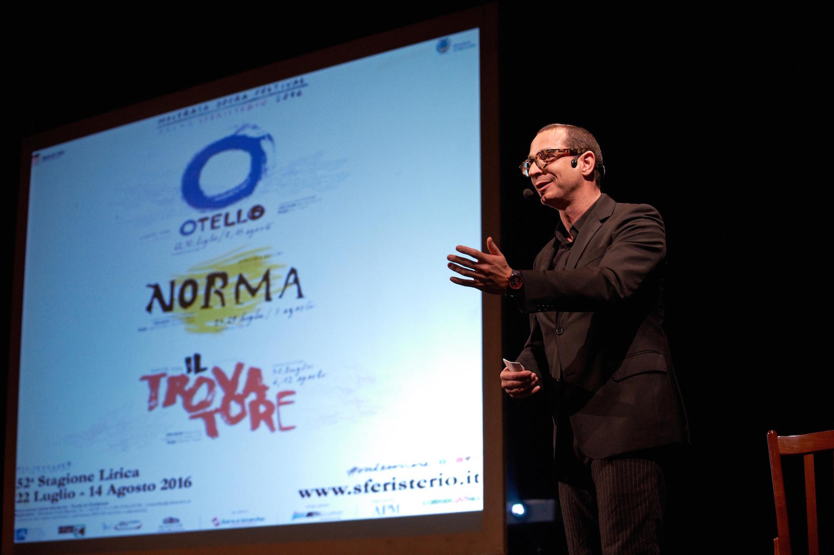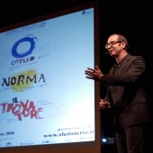 Il direttore artistico del Macerata Opera Festival ha catturato gli spettatori come sa sapientemente fare, coinvolgendoli nel racconto delle tre opere in cartellone – Otello, Norma e Il trovatore – tra le storie dei protagonisti. Video, spezzoni di film come Lo Squalo e Senso e intermezzi musicali dal vivo con il soprano So Eun Jeon e la pianista Cesarina Compagnoni, hanno arricchito lo spettacolo, che ha letteralmente affascinato tutti.